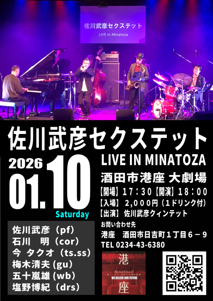 01/10<チケットご予約受付中>佐川武彦セクステット LIVE IN MINATOZA