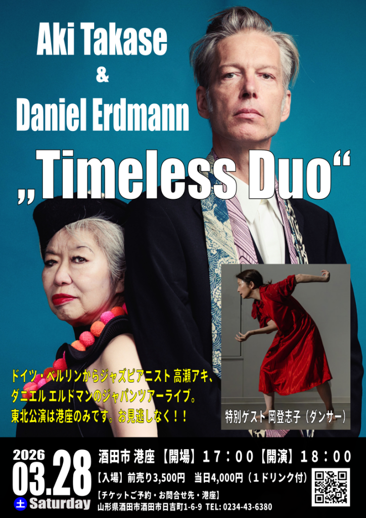 ドイツ・ベルリンからジャズピアニスト高瀬アキさん、ダニエル エルドマンさんが来日、ジャパンツアーライブが決定。東北公演は港座のみになります。お見逃しなく!!